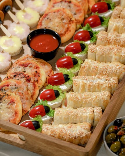 – kąsneliai su kietuoju sūriu ir vytintais pomidorais ( mūsų firminis).