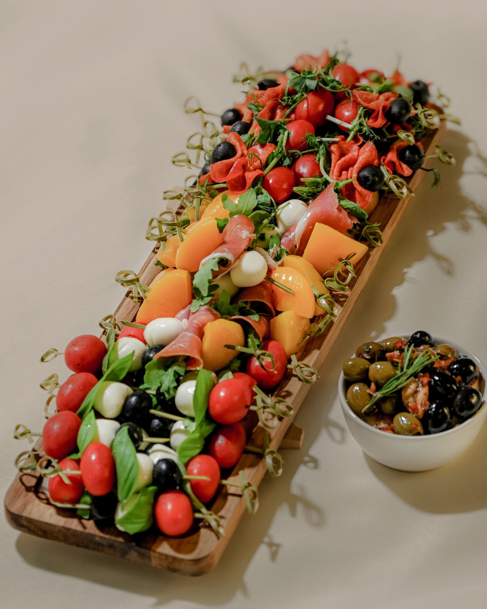 – su saliami dešra, pomidorais ir alyvuogėmis, 14 vnt.