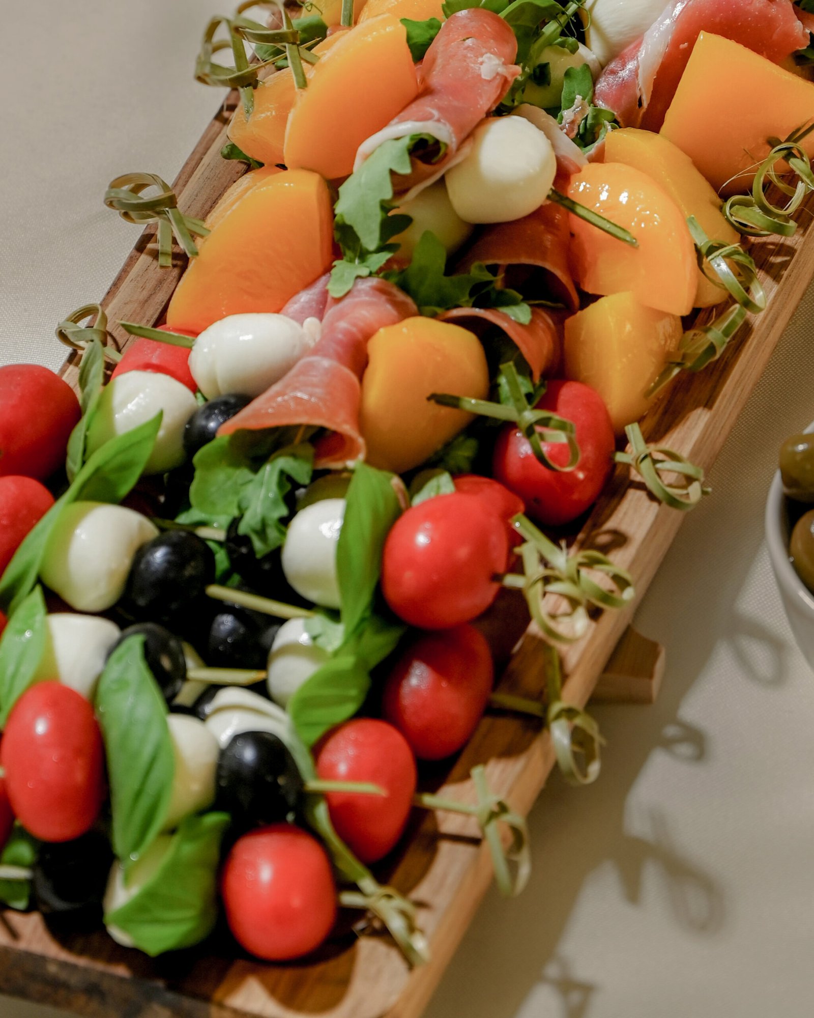 – su vytintu kumpiu, persikais, brie sūriu ir rukola, 14 vnt.