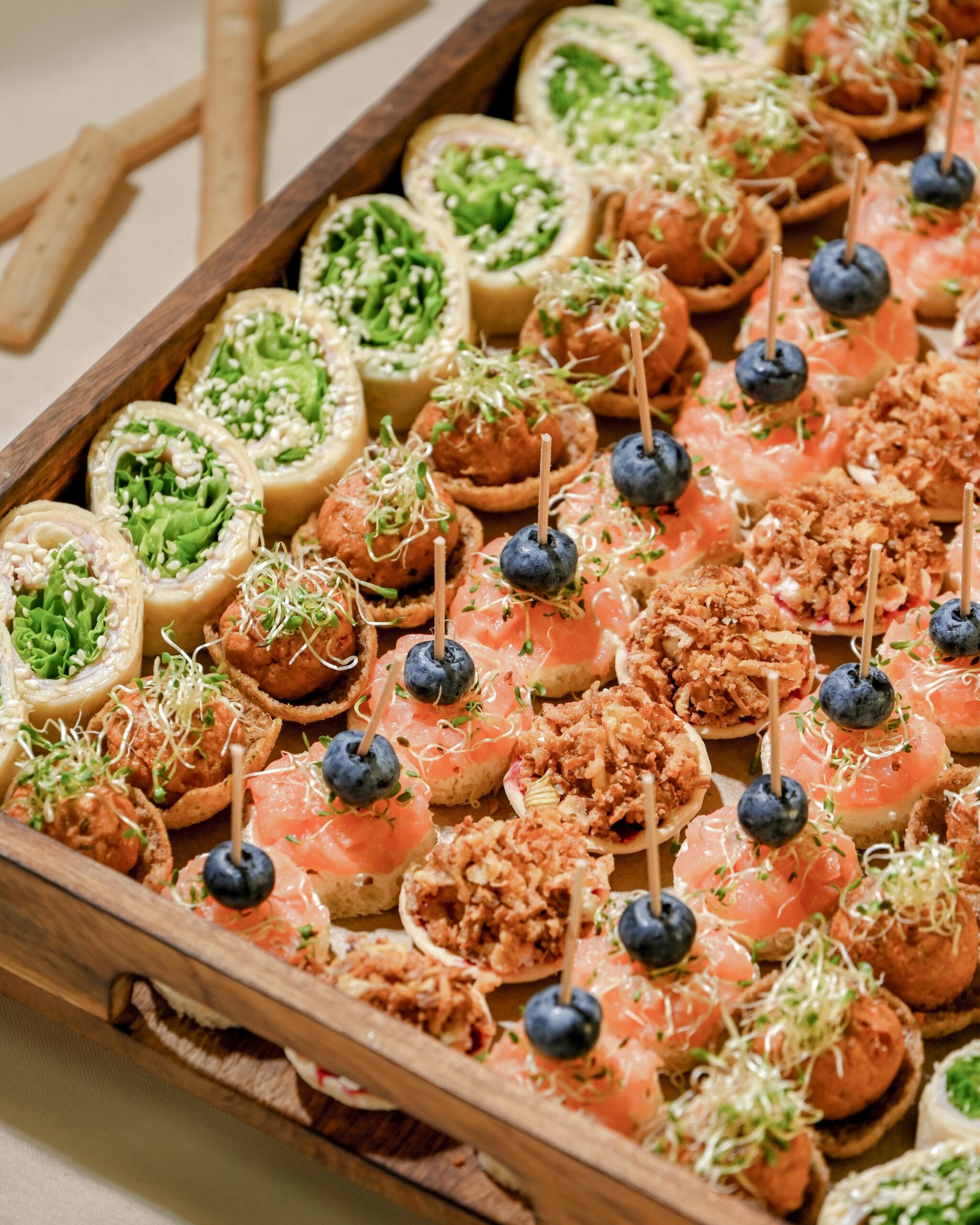 – baltos duonos sumuštinukai su rūkyta lašiša ir šilauogėmis;